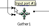 Drag an arc from the hover port to another component, or drag an arc from another component and drop it onto the hover port. This creates a new input or output port for that operator automatically.