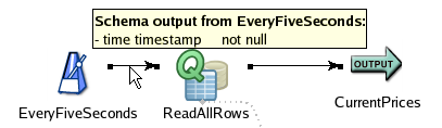 The tooltip for an arc between components displays the schema of the tuples on that arc (if known). For example:
