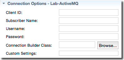 The values of the Connection Options section are optional unless your JMS Provider requires authentication information such as a user name and password.