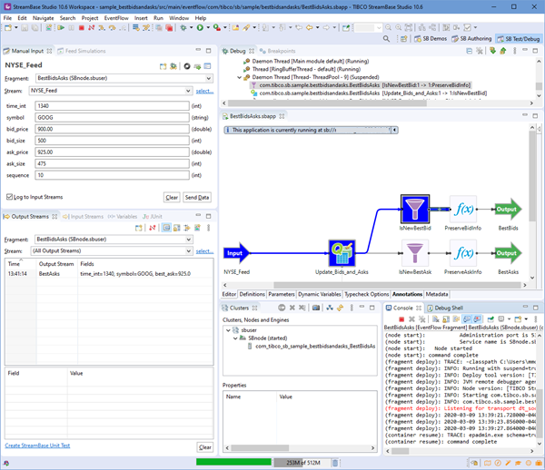 In StreamBase® Studio, use the SB Test/Debug perspective to run, test, and debug StreamBase applications.