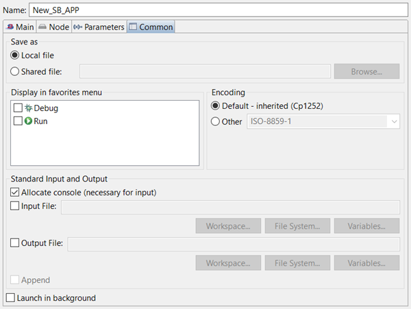 The settings in the Common tab are common to all Eclipse Run Configurations. Use Eclipse Help to learn how more about these options.