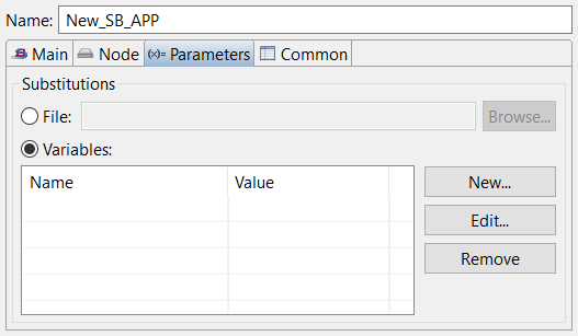 Use this field to define substitution variables, or to specify a file that contains substitution variables. See Substitution Variables for more information on using substitution variables in configuration files.