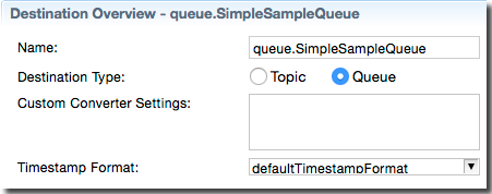 Use the Destination Overview section to specify a name for the selected destination, and its Destination Type, either Topic or Queue.