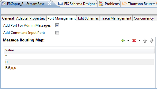 Converts incoming application-level FIX messages from the target to tuples and sends them to the application. The adapter can be configured to route tuples from different message types to specific output ports. (For example, route all Cancel and Cancel/Replace messages to port 2.) Up to 10 ports can be configured for this purpose.