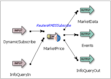 The adapter's set of active subscriptions can be retrieved by enqueuing a tuple to the adapter's information query input port. When queried, the adapter emits a stream of tuples representing the set of active subscriptions on its information query output port. For RMDS 6, the info query mechanism can be used to retrieve the set of fields in the loaded data dictionary.