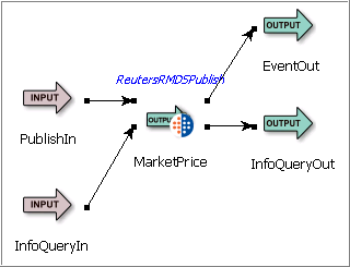 PublishIn (input): Tuples enqueued on this port cause the adapter to publish OMM refresh and update messages. The adapter informs the StreamBase application when it should publish through tuples emitted on its event port.