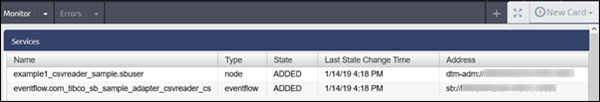 Services Table: The monitor always contains a Services table showing services that have been discovered and their current state.