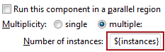 of this component, select multiple in the Multiplicity control, and enter an integer number of instances, or enter the name of a parameter if the form ${. When changing from single to multiple multiplicity, Studio starts with 2 in the Number of instances field. Edit this as your application requires.
