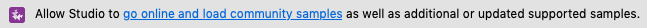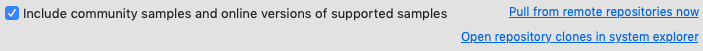 Click the Pull from remote repositories now link to make sure you have the latest sample versions and to configure your local clone to use the branch appropriate for this Studio release.