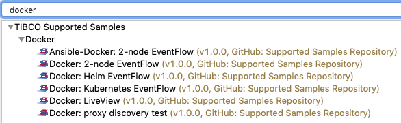 TIBCO provides a number of advanced Docker samples on its GitHub repository. You can load these samples into Studio like other samples: