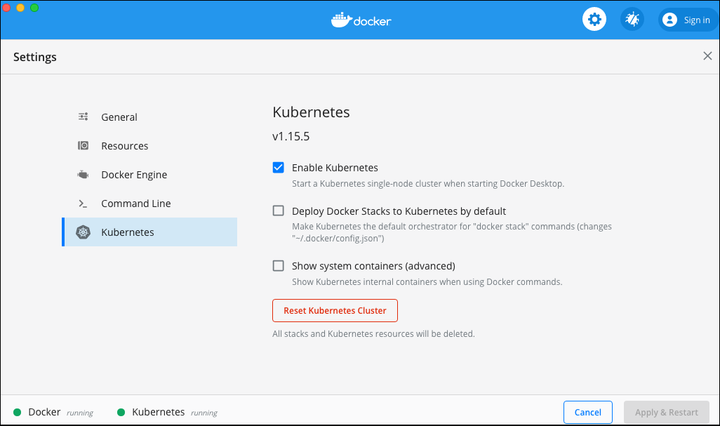 Kubernetes is required to be installed and configured. When using Docker desktop, this can most easily be achieved by enabling Kubernetes:
