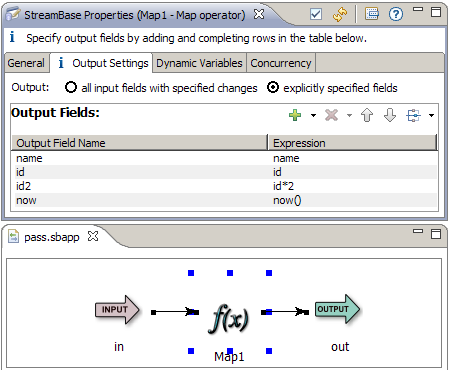 This StreamBase application, which we named pass.sbapp, contains an input stream with this schema: