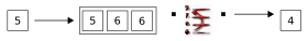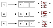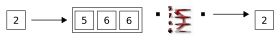 The following series of diagrams traces the flow of unsorted data through the BSort operator. In this example, assume that we want to sort by tuples, with a buffer size of three. No grouping is specified, so all fields are sorted together. In each step, the single box on the left represents a tuple enqueued on the input port of our BSort operator. When a sort occurs, the output tuple is shown flowing out of the BSort operator's output port on the right.