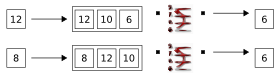 12is enqueued, another Bsort occurs. Because the existing two tuples both have a key field of6, the one that arrived first is released.When the last tuple arrives and triggers a Bsort, the second duplicate tuple is released.