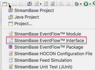 ), and select StreamBase EventFlow™ Interface from the dropdown menu: