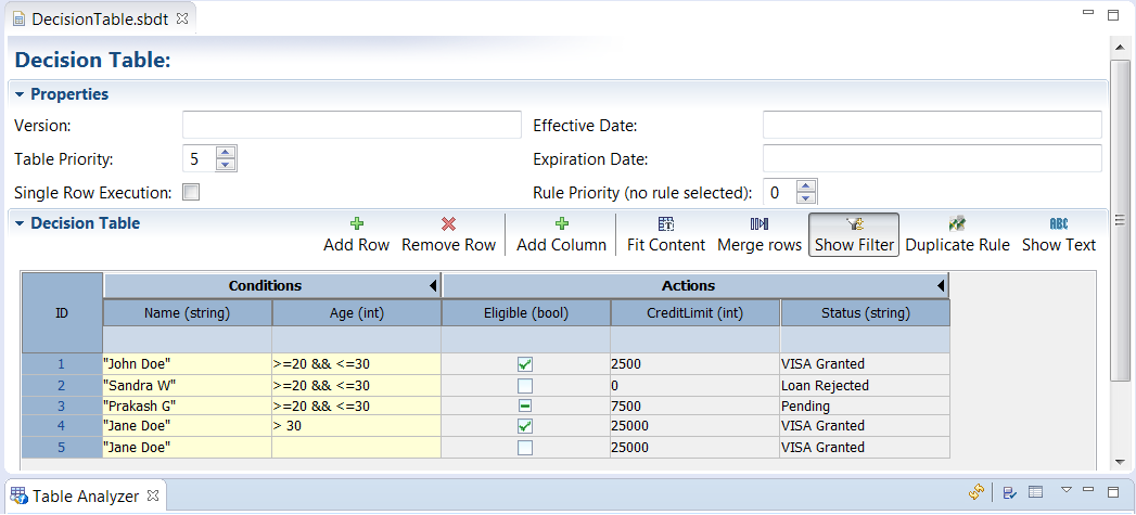 conditions. The Table Analyzer validates decision tables by checking them at design time. You can also use the Table Analyzer's