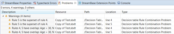 Rules will run regardless of whether warnings appear in the Problems tab. In addition to those described previously, another useful Table Analyzer feature to troubleshoot rule issues or encourage rule creation best practice is . Show Coverage highlights rules that share predicates in common, based on rule creation. This is particularly useful to eliminate duplication, especially when editing large rule sets.