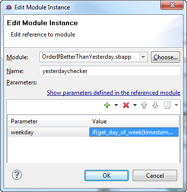If your application design includes passing parameters to module instances, enter one or more parameter names and the expression that determines the value of each.