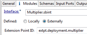 Select Defined: Externally to defer specification of implementing modules until runtime. In this case, you must provide an Extension Point ID, and must configure a StreamBase deployment file with the same ID. Extension point IDs are container-scoped and must be unique among all Extension Point components used in all modules in the same container. Choose a complex ID that is not likely to be mistaken for an ID in another module.