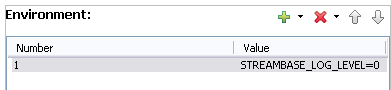 Use the Environment table to specify any environment variables needed by the command you want to run, that are not already in the environment of the containing StreamBase Server, or whose values you want to change for the purpose of running the specified command. For each row, specify the variable name, an equals sign, and value. For example: