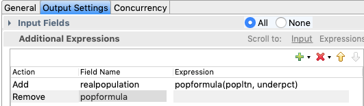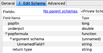 population, anundercountpercentage, and the entire function literal for a function that takes the data types defined in the Input Stream's schema, a long and a double:function (pop long, under double) {round(pop + (pop * under))}