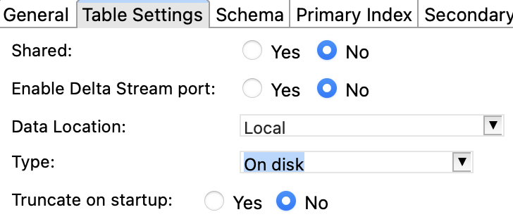 Truncate on startup No This field is only visible if Data Location is set to Local and it is disabled unless Type is On disk.