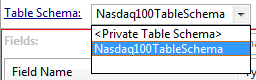 When you select a named schema, its fields are loaded into the schema grid, overriding any schema fields already present. Once you import a named schema, the schema grid is dimmed and can no longer be edited. To restore the ability to edit the schema grid, re-select Private Schema from the dropdown list.