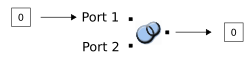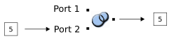 The following two events show the output when data arrives on each port: