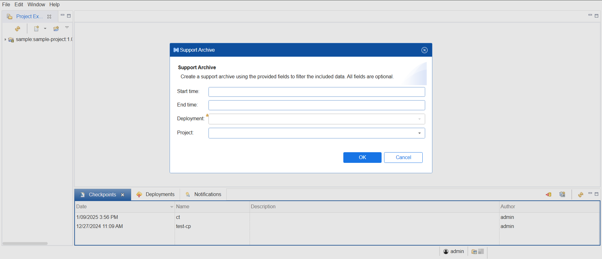 | Deployment | The deployment name to filter and isolate relevant details for the support archive. Keep this blank to fetch all support details within the selected timeframe. |
