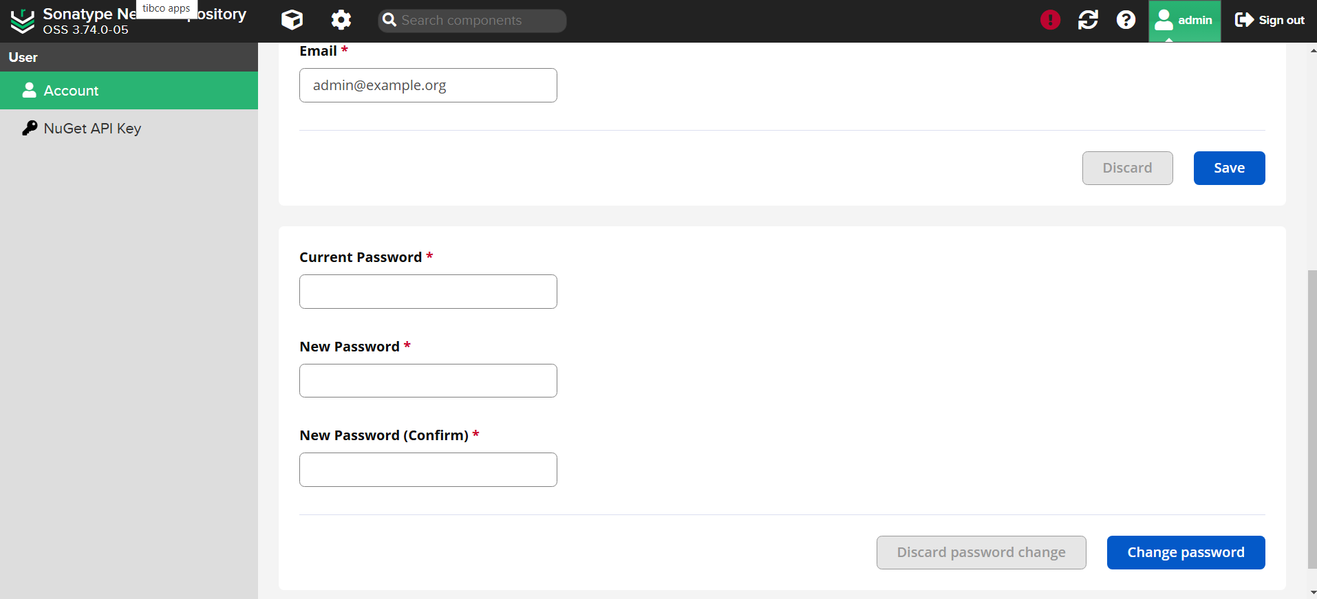 If you need to change the password for the nexus-server after the deployment of the application, follow these steps: