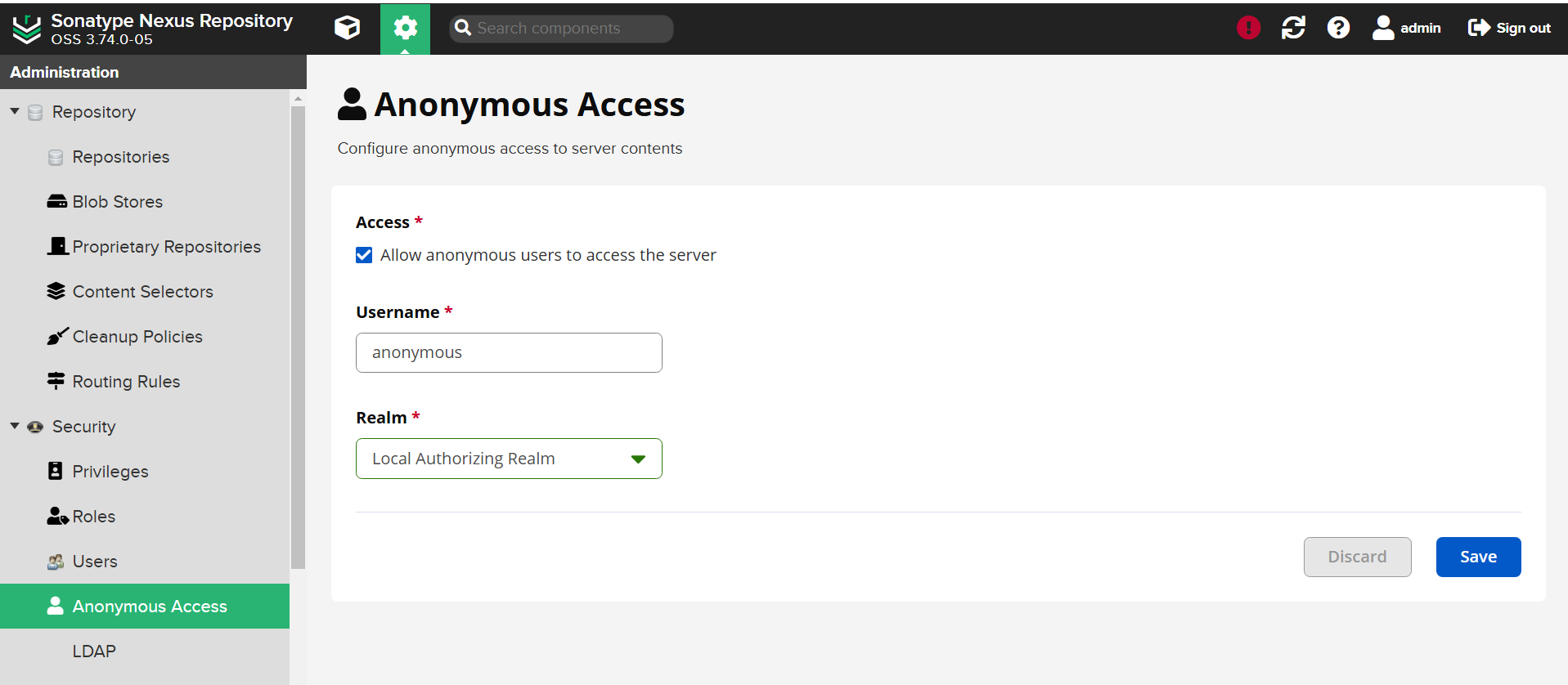 Securitydropdown, selectAnonymous Accessand uncheckAllow anonymous users to access the serverand save the settings: