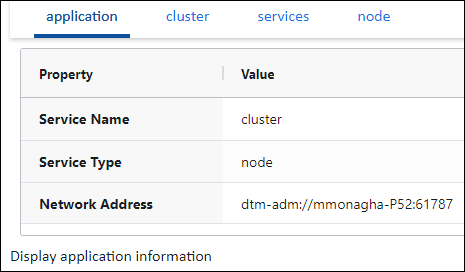 Use the application tab to display application information.