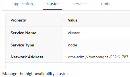 Use the cluster tab to manage the high-availability cluster.