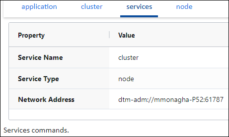 Use the services tab to run services discovery commands on the cluster.