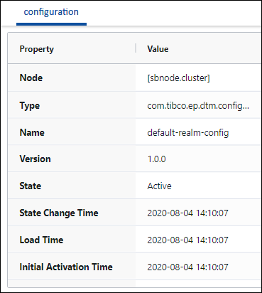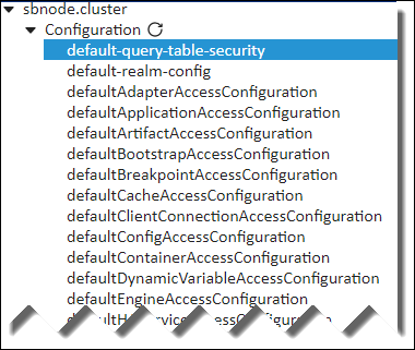 Expand a Configuration managed entity to drill down to the desired configuration object. As with everything else in the Clusters view, configurable objects, including the default ones, vary greatly depending on the application currently available in the installed node.
