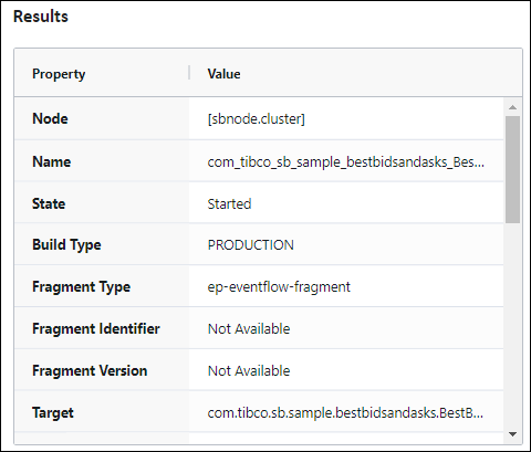 Supply the necessary parameters per command target and click . Results are shown for the Streaming product version.