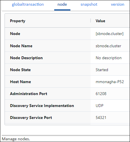 The following tabs are available to manage the node: