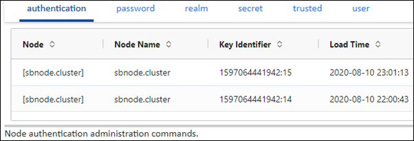 authentication: node authentication administration commands