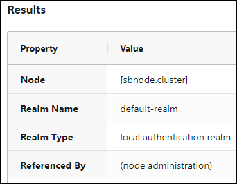 The following shows the default authentication realm details.