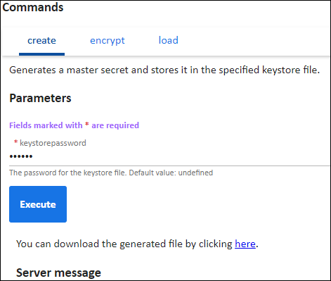 create: generates a master secret and stores it in the specified keystore file