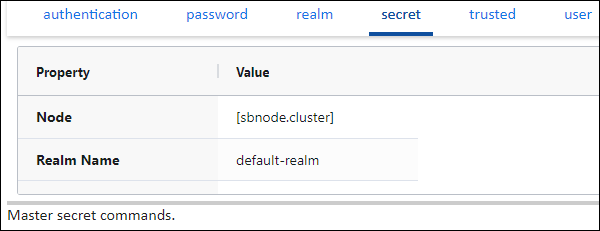 Use the secret tab to configure and manage the node's master secrets.