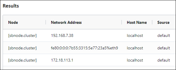 Supply the necessary parameters per command target and click . Results are shown below for the supported command target.