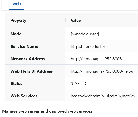 Use the user tab to configure and manage the node's web server and deployed web services.