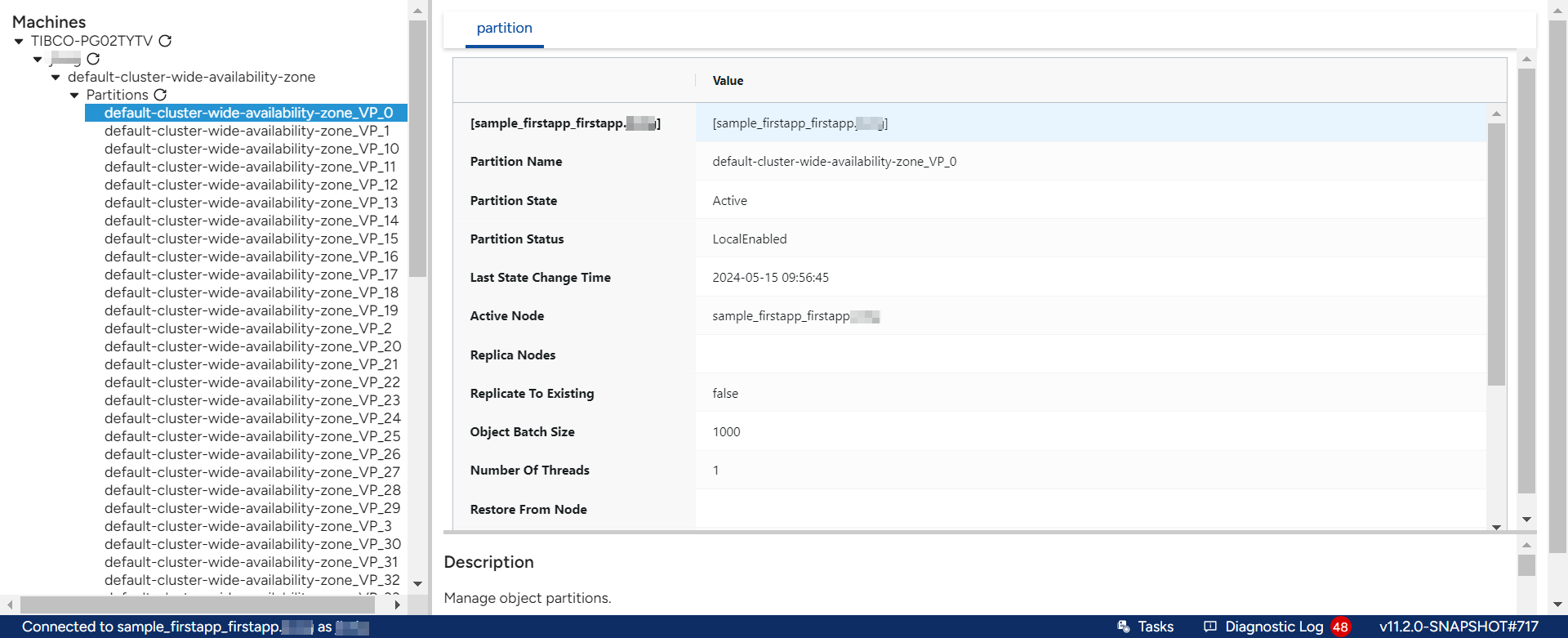 Active Node — the active node for the partition.