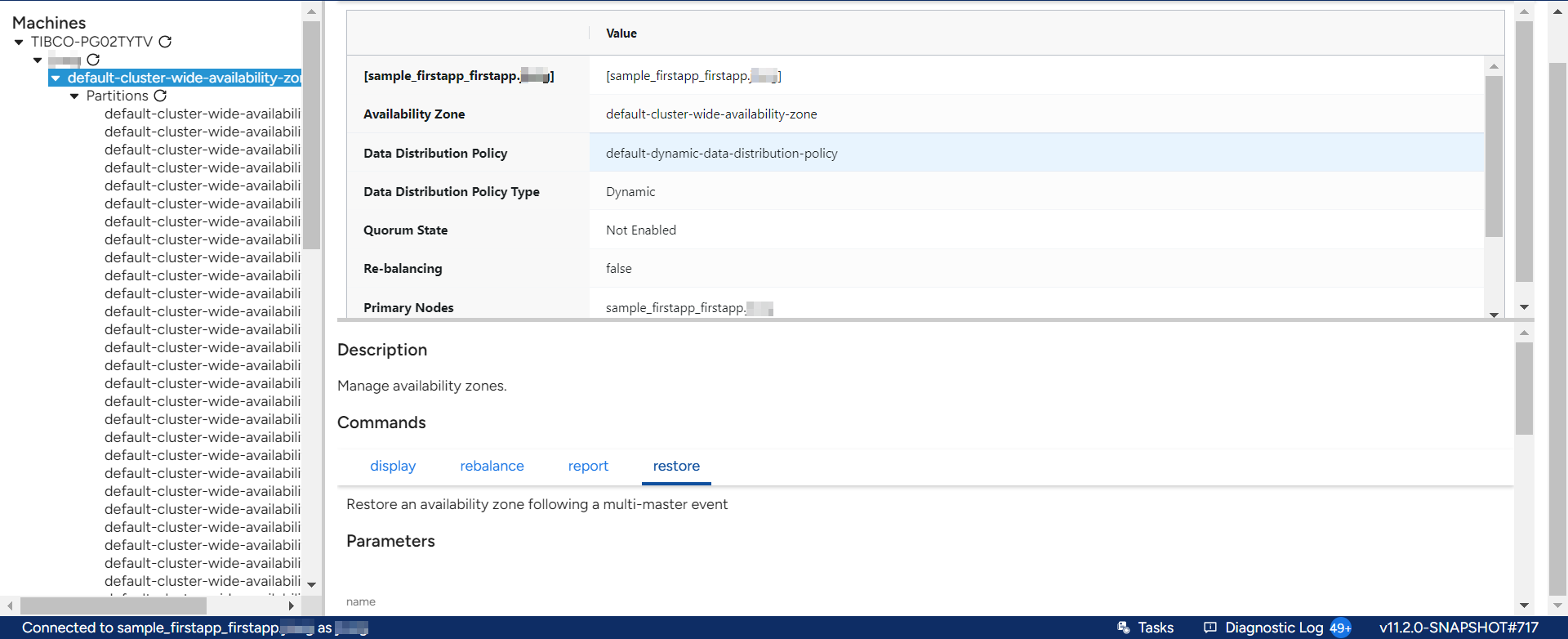 Data Distribution Policy — the data distribution policy used by the availability zone.