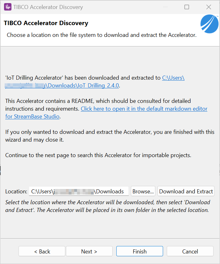 Click Finish if you only wanted to download and extract the Accelerator.