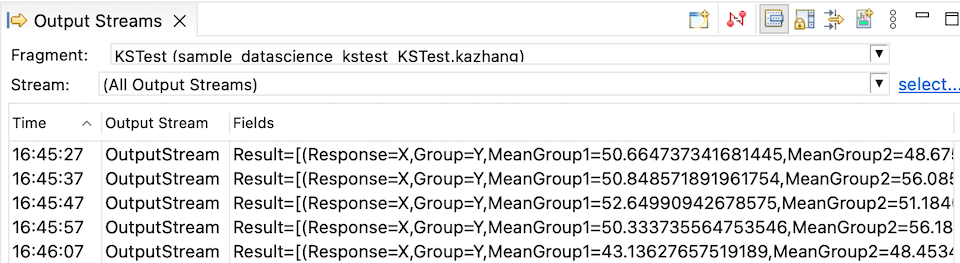 KSTest.sbfs, then click the Run button to start feeding the data. -