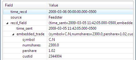 By default, the Output Streams view shows the time received for each tuple in the output grid. (For applications fed by a fast feed simulation, the timestamps in this column can be the same for dozens or even hundreds of rows.)