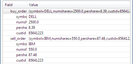 By default, nothing shows in the Details pane. Select any tuple row in the output table to see a tree display of the individual fields of the selected tuple. The figure above shows an example of a populated Details pane.
