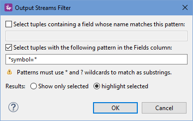 Select this option to narrow the list of tuples in the Output Streams view. Only the tuples matching the specified filter settings are shown.